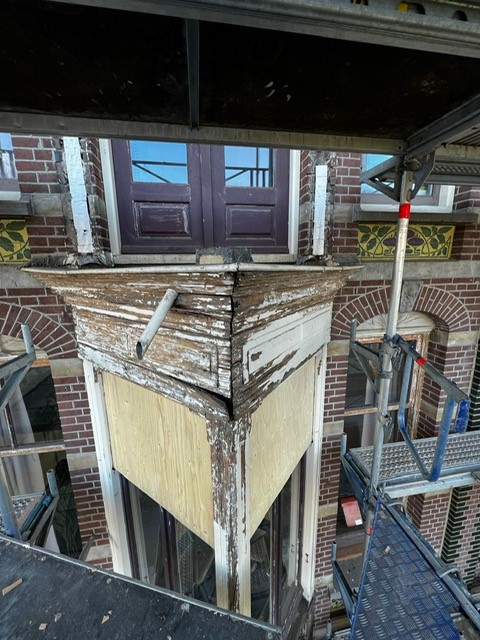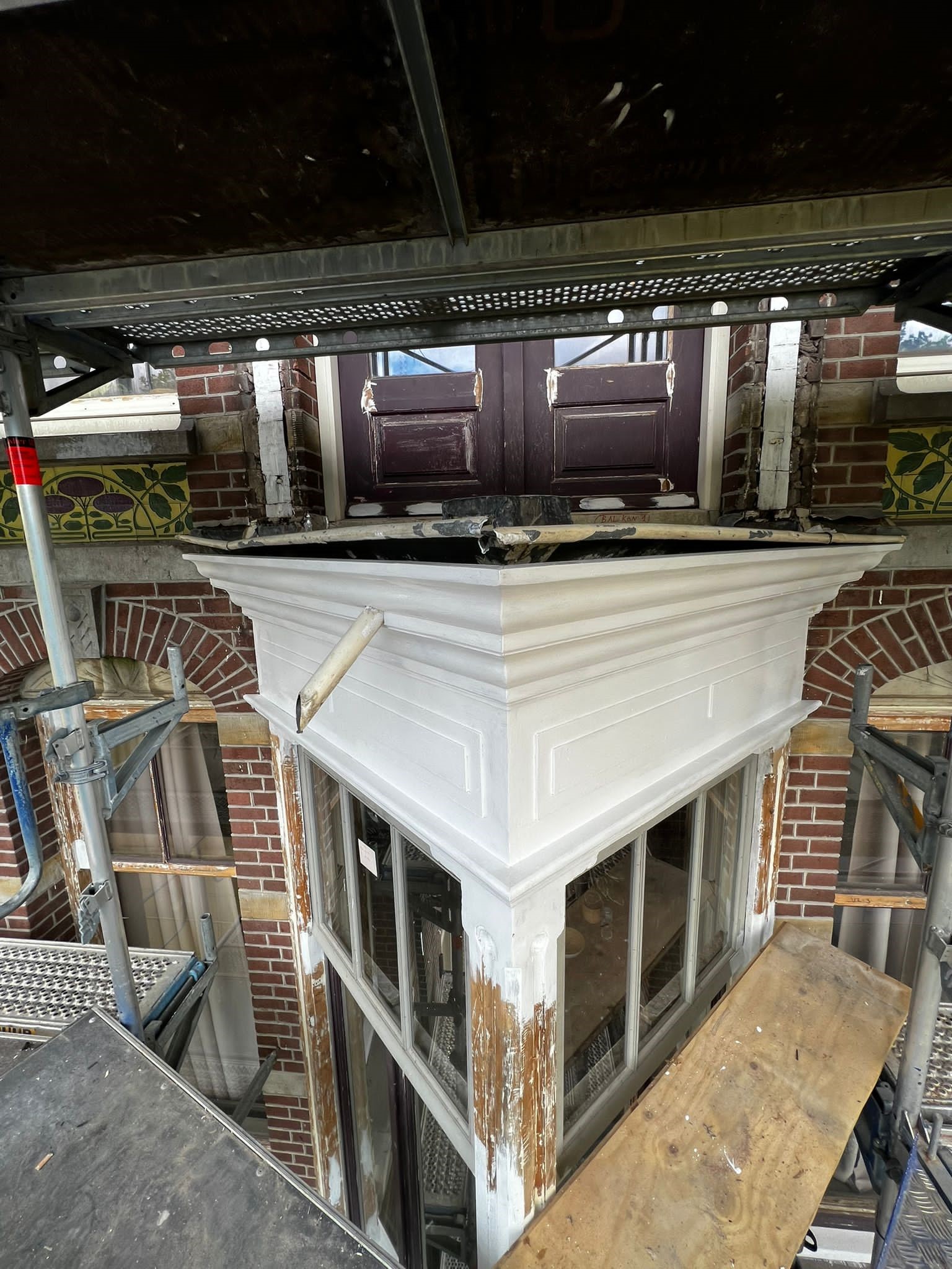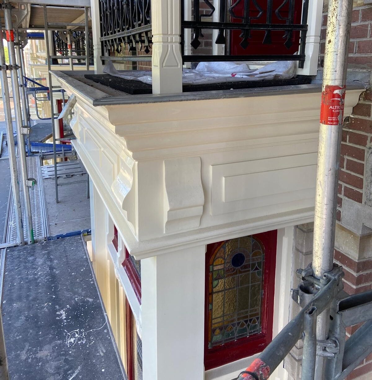 Daarnaast hebben we de balusters en ramen die wij niet konden herstellen met de hand opnieuw gemaakt zodat elk bestaand detail in de nieuwe staat te zien is.